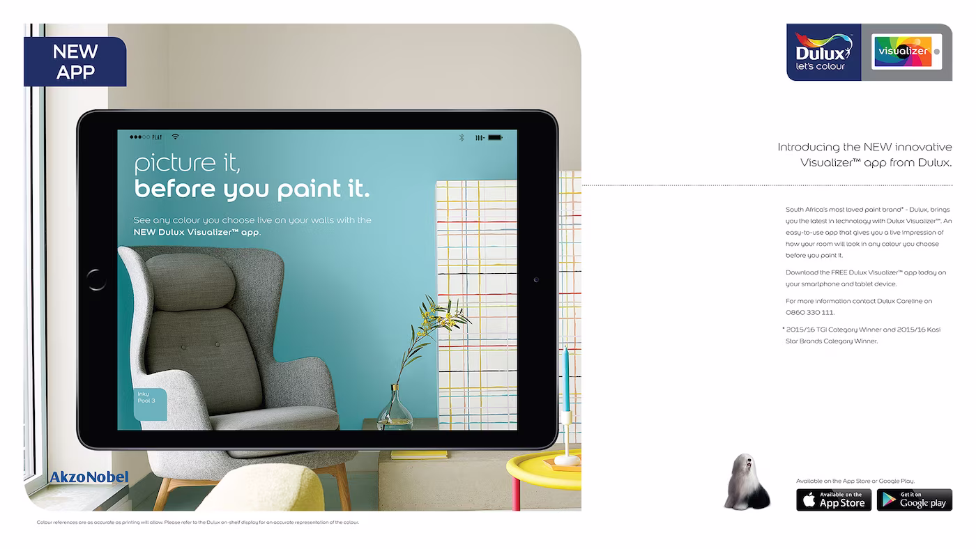 Download the FREE Dulux Visualizer app today on your smartphone and tablet device. Available on the App Store
